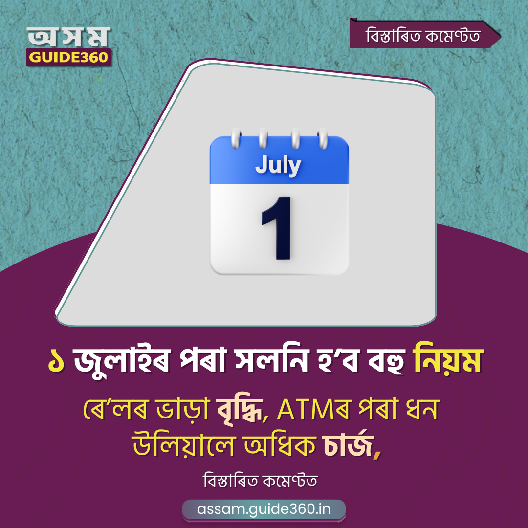 অসম সহ দেশজুৰি ২০২৫ চনৰ ১ জুলাইৰ পৰা একাধিক নতুন নিয়ম কাৰ্যকৰী হ’ব, যাৰ প্ৰভাৱ সাধাৰণ নাগৰিকৰ দৈনন্দিন জীৱন আৰু মুঠ ব্যয়ত পৰিব। নতুন নিয়মসমূহে ৰে’লযাত্ৰা, বেংকিং সেৱা, টিকট বুকিং, ক্ৰেডিট কাৰ্ড ব্যৱহাৰ আৰু পান কাৰ্ড সংক্রান্ত বিষয়া-কেন্দ্ৰিক।